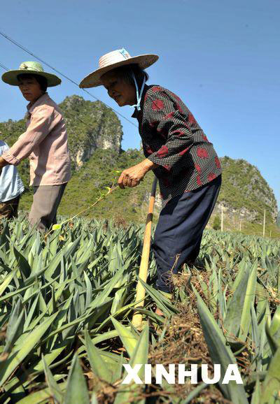 深处大石山区的广西河池大化瑶族自治县结合山区特点,积极推广剑麻种植,从2005年的15亩迅速推广至目前的6万亩,成为大石山区群众脱贫致富、增加收入的新途径。