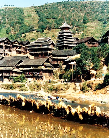 苗族的建筑在各地也有很大差别。黔东南居民住木制平房和楼房。楼房一般为两层,建筑形式多为“吊脚楼”(即按山坡斜度竖桩,在桩上建筑),屋顶为双斜面。顶棚上层贮藏粮食、杂物,吊脚楼下堆放杂物或圈养牲畜。湘西和贵州松桃等地,采用木质结构、双斜面瓦顶或草顶平房,每幢3~5间,“偏厦”作灶房或牲口圈。过去,地主或富裕人家还筑有庭院,并砌高墙或石碉围护。云南文山地区苗族居民住宅的墙壁多用竹条编织、外面糊上泥土的方法建造,屋顶为平形草顶。昭通地区的苗族居民多住“权权房”,即一种用几根树干交叉搭糊,盖上茅草,用树枝或竹子编织、糊泥作墙的房屋。一般隔为两间,人畜各一。海南岛苗族住的是长而窄的茅草房,三间一幢,屋檐较长,檐下走廊是休息的地方。川南和黔西北的苗族多住士墙草顶或瓦顶的房屋。