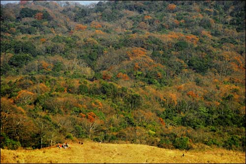 秋冬时节,被誉为“空中花园”的贵州省黔东南苗族侗族自治州台江县红阳万亩草场,天高云淡,娇艳似火的红叶环拥在连绵起伏的草场四周,火红的枫叶掩映着苗家吊脚楼,成群的牛羊在蓝天白云影映下的草场上自由徜徉,呈现着人与自然的和谐和青藏高原般的意境。