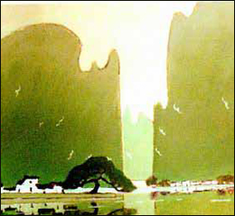 当今在“现代”创作意识的冲击下,拿着画板写生似乎要成为历史。然而,在90年代最后一个暮春,来自广西、浙江等地的黄格胜、姜宝林、王镛、卢禹舜、陈平、赵卫、张复兴、满维起、谢冰毅10位当代著名中青年画家,提出了重返自然“清新”一下的想法,聚集一起,开始锦绣中华万里行的举措,他们第一站就选在了人们熟得不能再熟的桂林,他们的目的很明确:“用今天的眼光和心灵去观察、去寻觅、去感悟,画出属于自己这个时代的作品。”而首选漓江更是极具挑战性的。众所周知,“桂林山水甲天下”,历代文人墨客多会于此,创作出了无数表现桂林秀美的作品,且成共识,达到了很高的艺术品位。如徐悲鸿的《漓江春雨》、李可染的《漓江图卷》,都达到了难以超越的高度,所以如何用现代人的眼光、观点和审美格调来表现自己心目中的漓江情韵,是摆在他们面前的一大课题。