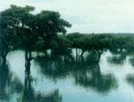位于广西合浦县东南部沙田半岛的山口红树林生态自然保护区,是北回归线以南热带红树林生态系的代表。它由该半岛东侧和西侧的海域、陆域及全部滩涂组成,总面积80平方公里,岸线总长50公里。东侧是火山灰发育的土壤,滩涂淤泥肥沃,红树林生长特别茂盛。西岸滩涂全为淤泥质,适宣红树林生长。而且保护区所处地理位置光热条件较好,冬季低温影响小,海湾侵入内陆,封闭性好,风浪、潮汐、余流的作用较弱,岸滩比较稳定,海水污染程度很低,水质洁净,是红树林大面积分布和生存的理想区域,构成良好的生态系统。这里是我国大陆海岸发育较好、连片较大、结构典型、保存较好的天然红树林分布区。自从这里建立红树林生态自然保护区以后,数万亩红树林生机勃勃。众多的鸟群在此栖息,有的还是珍贵鸟类,堪称名副其实的“鸟类天堂”。凌晨,鸟鸣声从四面传来,此起彼伏,叫人数不清到底有多少“咏晨歌手”在合唱。太阳初升,白鹭扇动着雪白的翅膀,向东南方向飞去;日轮西沉,林中苍鹭东岸呼西岸应,红树林中呈现着“千鹭鸣红林”的壮观场面。