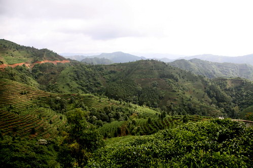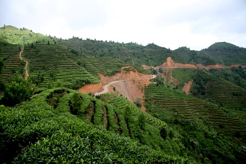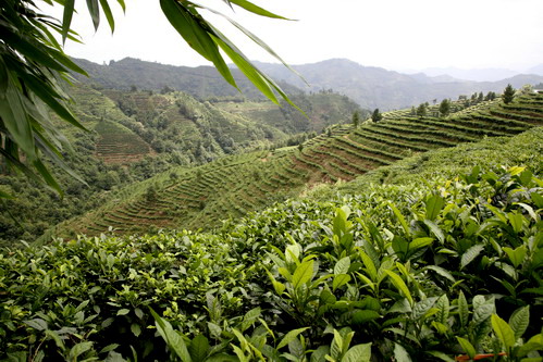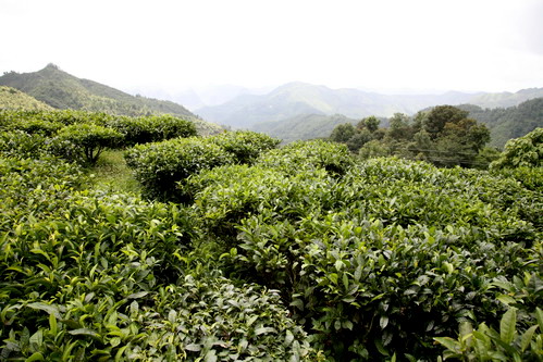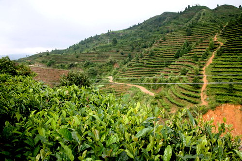 在凌云县的茶山上有着万亩的茶树 全国最好的白毫茶就在这里生长.