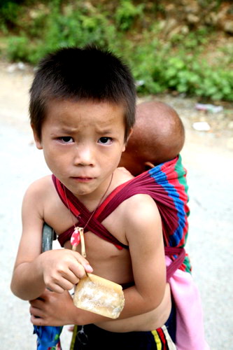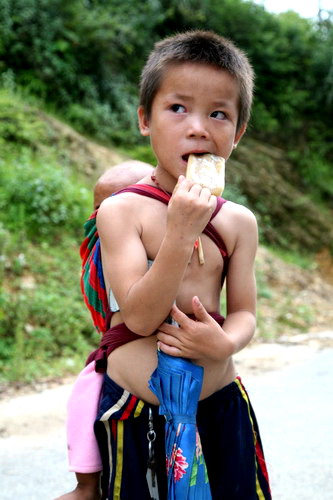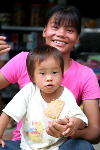 去往百色乐业县途中难忘一瞬-吃雪糕的老人与孩子