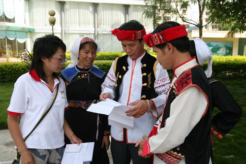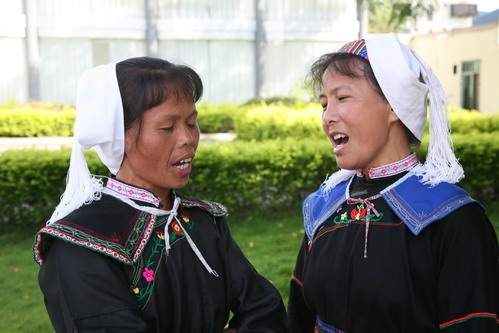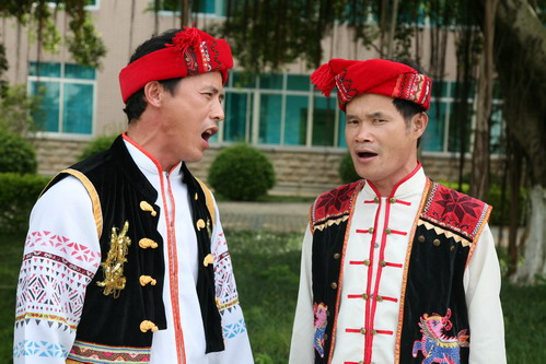 大新县壮族高腔民歌,以其音调高亢响亮及和谐的二重唱法特点,在广西山歌中独树一帜。大新高腔民歌也称为“诗雷”(壮语:最高、最响、最美之意)。歌手们在表演中采用“斗唱”形式,一般沿用一男三女斗、二男八女斗、十男三十女斗等各种不同唱腔组合。大新高腔民歌———“诗雷”以该县龙门乡三联村为代表。龙门高腔山歌有几百年历史,群众基础深厚,当地上至60岁的老人,下至十几岁的小孩,都能信口拈来。高腔主要以男女对唱为表现形式,尤其是青年男女求爱的表达方式。