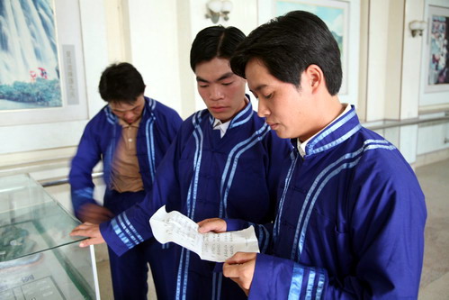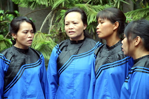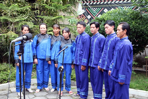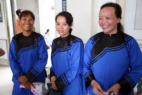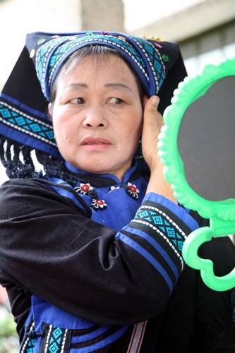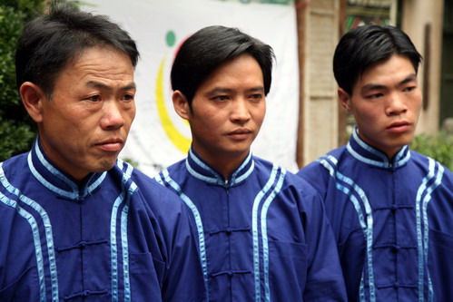 在靖西县,壮族占总人口的99.4%,是我国壮族人口比例最高的县,是典型的壮乡,生态盎然。靖西壮族传统的服饰以蓝、黑为主色调。以前最常见的一般服饰是上白(带有长穗的白等浅色的头巾),中蓝(镶黑边的蓝大卦),下黑(宽裤脚的长裤)。