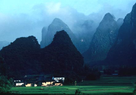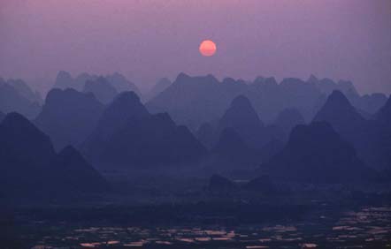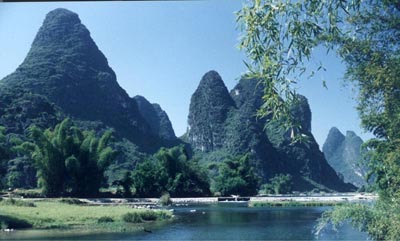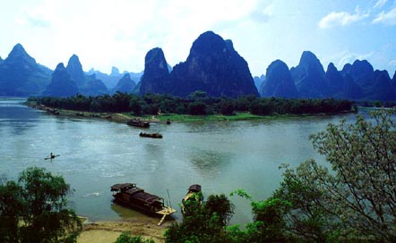 从来都认为乘船在漓江上慢慢漂流才是最有其真趣味的,可惜漓江上往来的机动游船,千篇一律是强迫游客走马观花的。如果为日程宽松的游人安排些人力的木船,象自称“青藤门下走狗”的那位有趣的袁枚袁子才老先生那样,让船在青山顶上缓行,细数江中游鱼,那是多好!