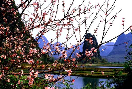 桂林有好些地方可以看桃花,尧山下的桃林和骆驼山下面那一大片都很好。桃花江的两边,自然少不得也有些疏落的桃花,家离桃花江不是非常远,有时候会和老爹一起去江畔钓鱼;也有时候我一个人去,半天或者一天,在江边树荫下看书。有次拿的是一本马茂元先生注的楚辞,明明是春天,却赫然看到书上写着,“悲哉秋之为气也!